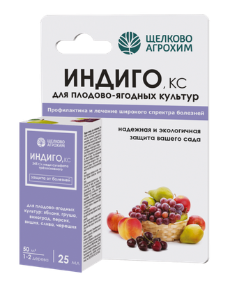«Индиго, КС» – медьсодержащий препарат нового поколения, предназначенный для борьбы с комплексом болезней на плодово-ягодных культурах. Ионы меди попадают в клетки фитопатогенных спор и начинают взаимодействовать с ферментами. Как результат, споры прекращают расти и не могут нанести вред растению. «Индиго,КС» – концентрированный препарат в жидкой форме, который не выпадает в осадок. Он безопасен для культур, совместим с другими препаратами. Действие «Индиго, КС» начинается сразу после обработки и продолжается в течение 14 дней в зависимости от погодных условий и инфекционной нагрузки. Максимальный фунгицидный эффект проявляется при профилактическом применении до появления симптомов болезни. Активен при температуре от 0 °C до +35 °C, не смывается дождём.